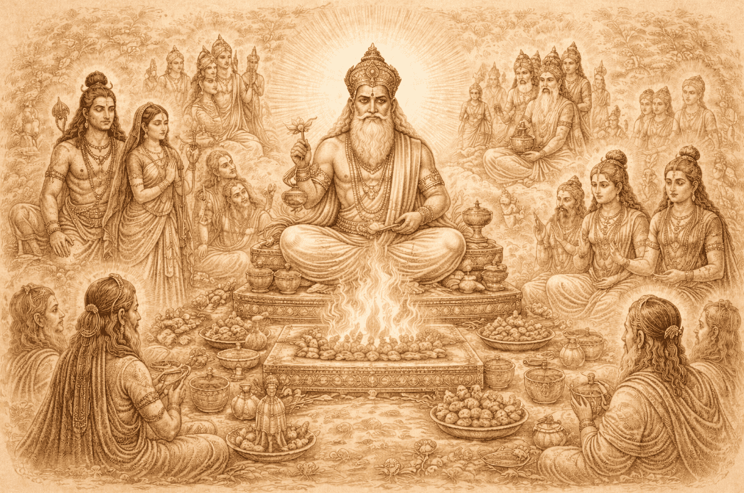 Daksha Prajapati occupies a unique position in Hindu cosmology. As a mind-born son of Brahma and one of the foremost Prajapatis, he was entrusted with transforming creation from abstract potential into a populated, orderly universe. Through lineage, ritual authority, and social hierarchy, Dakṣa became indispensable to cosmic expansion.