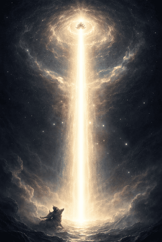 Between them appeared a colossal pillar of light, blazing yet serene, extending endlessly upward and downward. This was not a weapon, not a deity in anthropomorphic form, and not a symbol meant to be conquered. It was a jyotirlinga, a manifestation of pure luminosity without visible origin or termination.